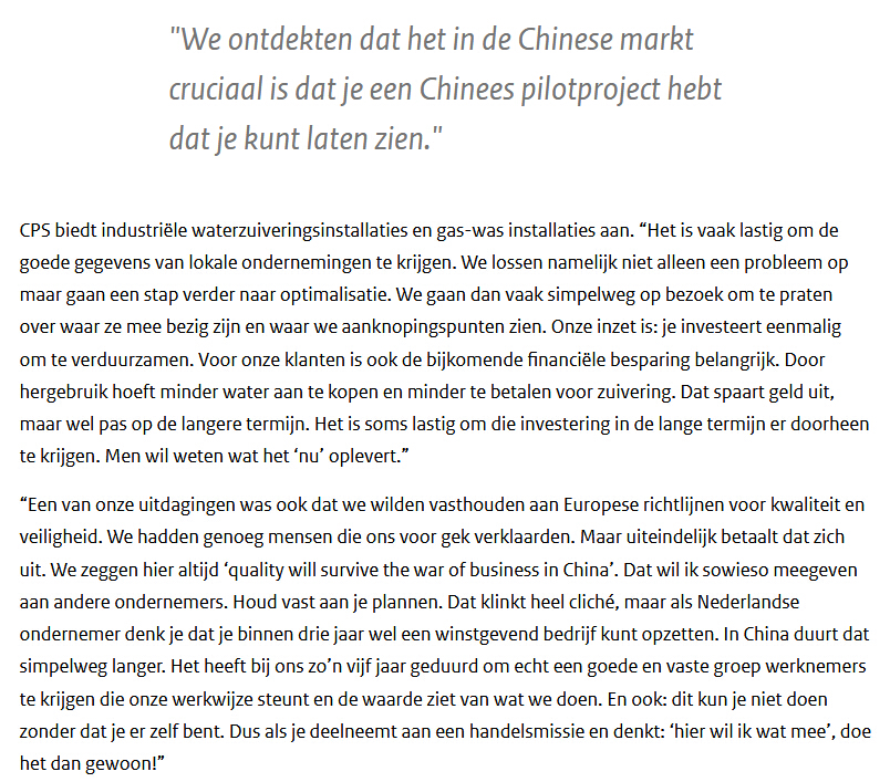 近日,蘇州依斯倍環(huán)保科技有限公司的創(chuàng)始人Jos Wolters先生接受了荷蘭大使館專人采訪,主要向國(guó)外同胞們講述自己在中國(guó)創(chuàng)業(yè)公司發(fā)展的一些情況以及心路歷程,這篇報(bào)導(dǎo)被發(fā)表在荷蘭政府官方網(wǎng)站《荷蘭世界》上面。