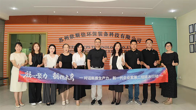 2025年9月16日下午,蘇州新一代企業(yè)家商會(以下簡稱“商會”)組織了"凝心聚力、擁抱未來,對話新質(zhì)生產(chǎn)力" 主題破冰活動。在商會常務(wù)副會長左磊帶領(lǐng)下,商會第二小組部分會員企業(yè)家來到蘇州依斯倍環(huán)保裝備科技有限公司(以下簡稱“依斯倍”)開展了一場兼具專業(yè)性與互動性的深度交流。
