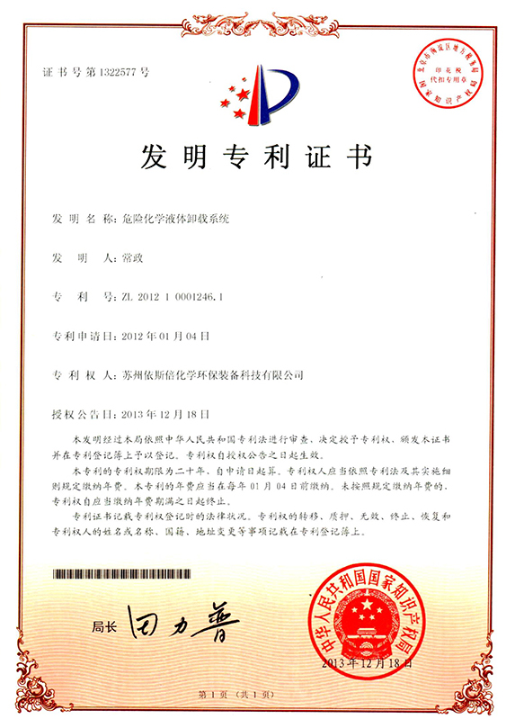 危險(xiǎn)化學(xué)液體卸載系統(tǒng)證書號(hào)1322577