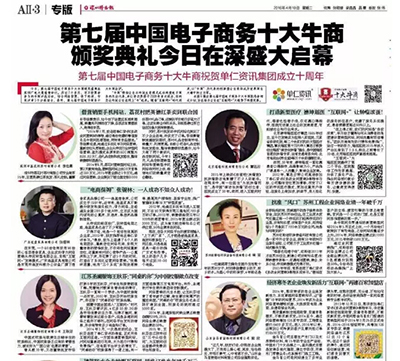 2016年4月19日,第七屆中國(guó)電子商務(wù)十大牛商頒獎(jiǎng)典禮在深圳廣電大廈隆重舉行。