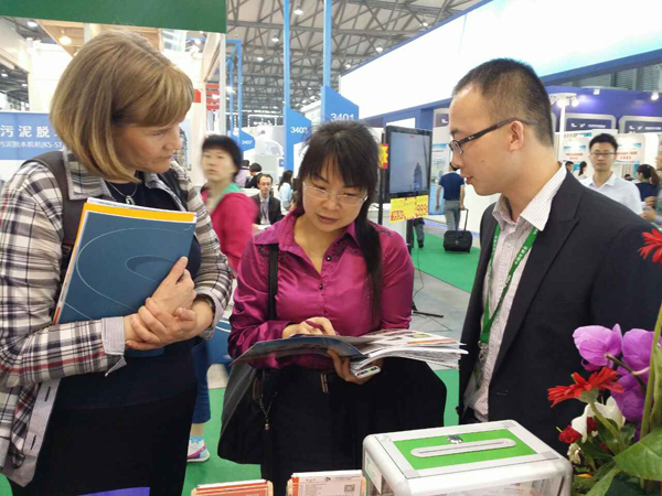 依斯倍展臺前,客戶不斷有客戶咨詢環(huán)保業(yè)務(wù)