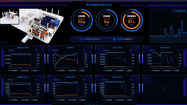 最終實現(xiàn)廢水達標量2300m³/天,循環(huán)用水量達到600m³/天,每年可為企業(yè)節(jié)約自來水 21.9萬噸,出水電導率EC≤5。